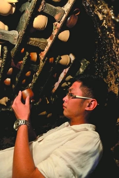 德化洞上陶藝村月記窯內(nèi),一名創(chuàng)業(yè)大學生在查看柴燒作品。
