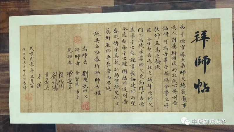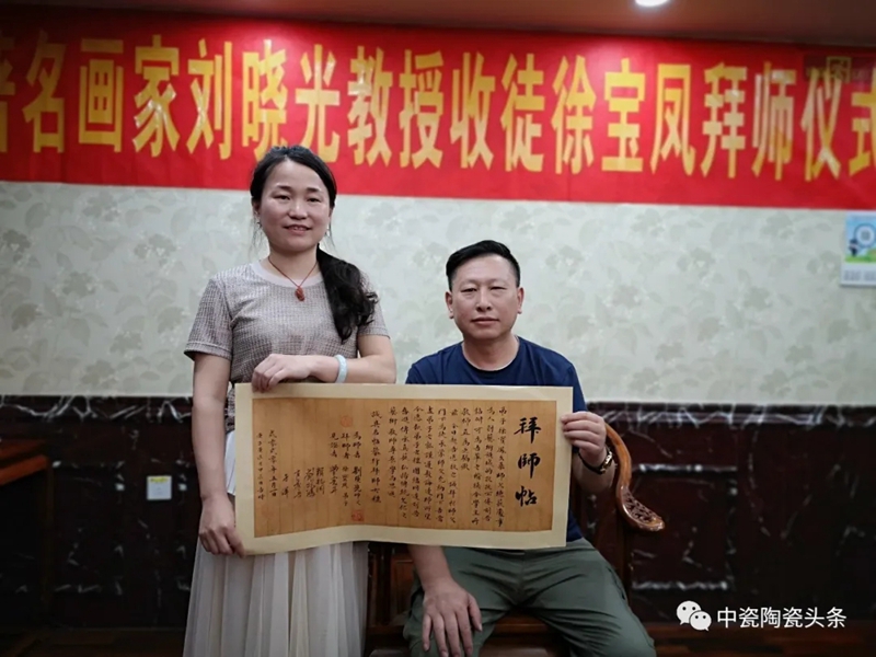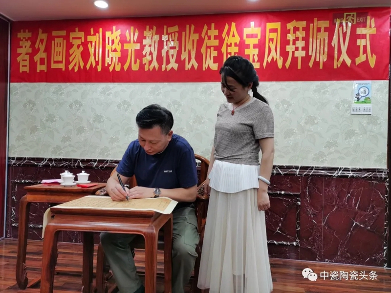 5月1日,福建省德化博及漁人陶瓷有限公司徐寶鳳拜中國(guó)美術(shù)家協(xié)會(huì)會(huì)員、清華大學(xué)美術(shù)學(xué)院高研班導(dǎo)師、中國(guó)現(xiàn)代美術(shù)研究院油畫院院長(zhǎng)、吉林省油畫學(xué)會(huì)副主席、吉林大學(xué)美術(shù)學(xué)院客座教授劉曉光為師的拜師儀式隆重舉行。