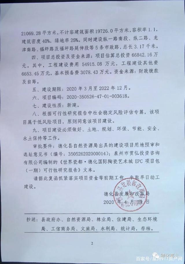 4月29日,德化縣政府官網(wǎng)信息公開欄發(fā)布了《德化縣瓷藝城投資建設(shè)有限公司關(guān)于德化國際陶瓷藝術(shù)城EPC項(xiàng)目包(一期)項(xiàng)目可行性研究報(bào)告的復(fù)函》(以下簡稱《復(fù)函》),文號為“德發(fā)改審〔2020〕61號”。