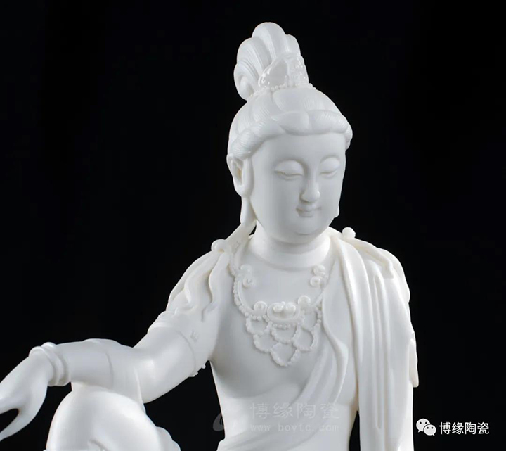 德化瓷器,以白瓷為最;白瓷之中,又以佛像為最。德化白瓷所塑佛像有性格鮮明、造型優(yōu)美、神態(tài)逼真、風(fēng)格洗練的特點。有一種單純的雕塑美和原材料的質(zhì)地美,最能體現(xiàn)佛教樸素、平和的思想。