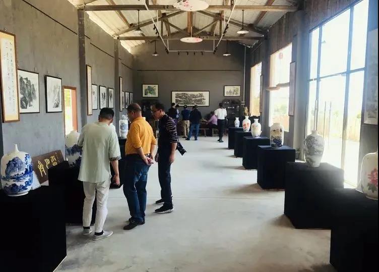 走進張移峰的工作室,墻壁上掛滿了各式各樣的水墨畫,架子上陳列著一些柴燒器皿、青花瓷瓶,案臺上鋪著宣紙,還有未完成的瓷畫,空氣中彌漫著淡淡的墨香,一下子將人們帶進了淡然悠遠的藝術(shù)世界。