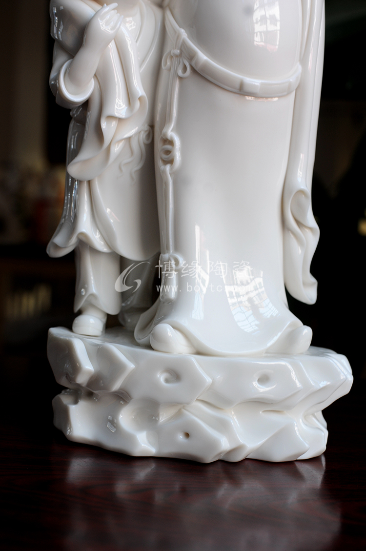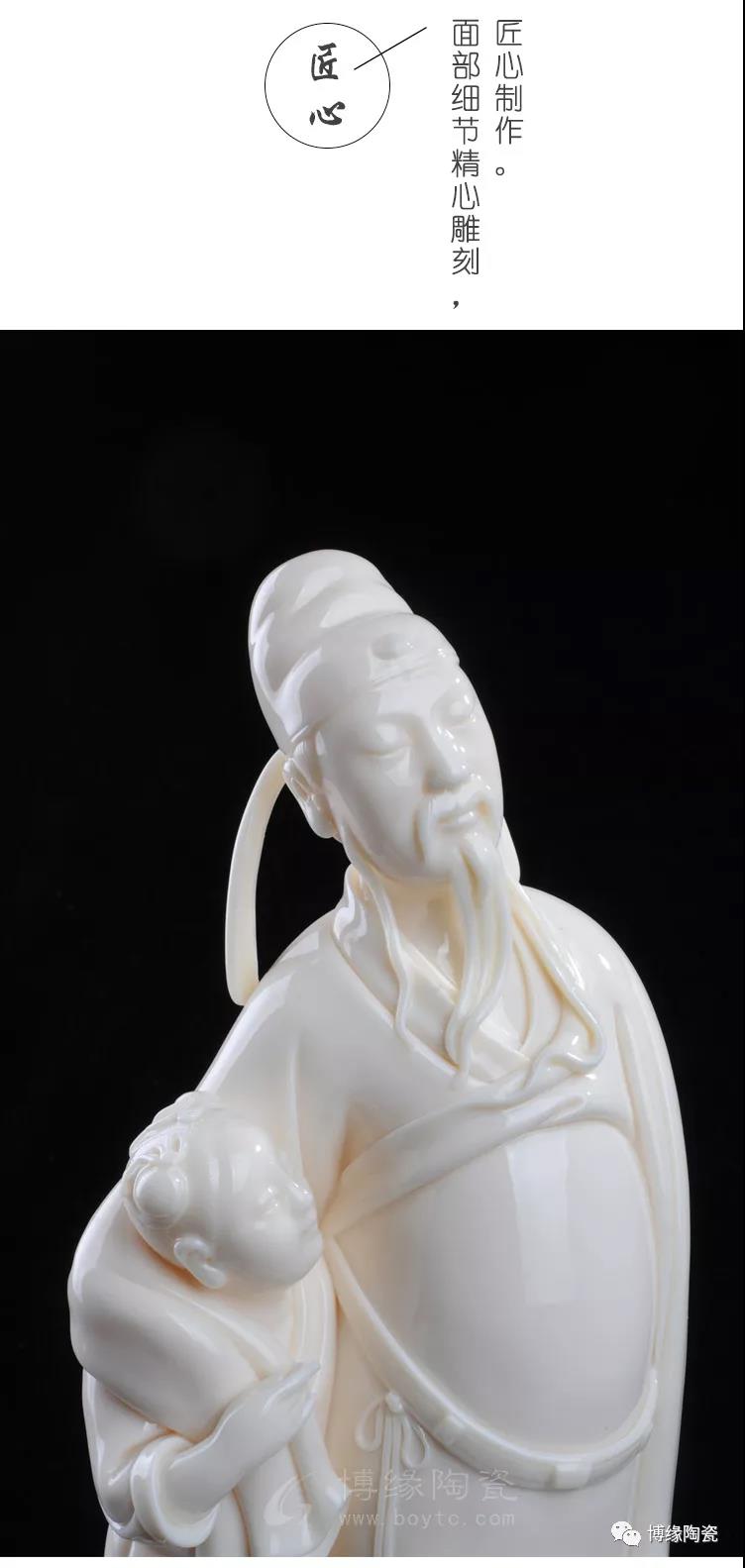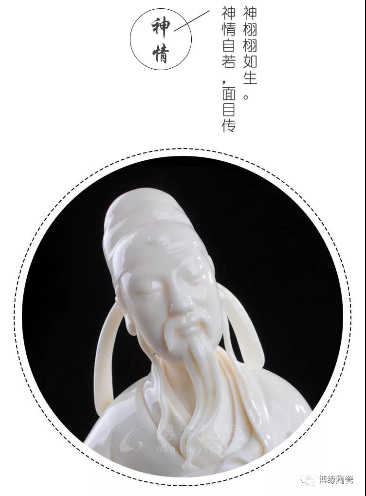 德化白瓷細(xì)膩、瑩澈、堅(jiān)脆、明凈,玉石般的光芒閃動(dòng)著圣潔、高傲的精神氣質(zhì)。