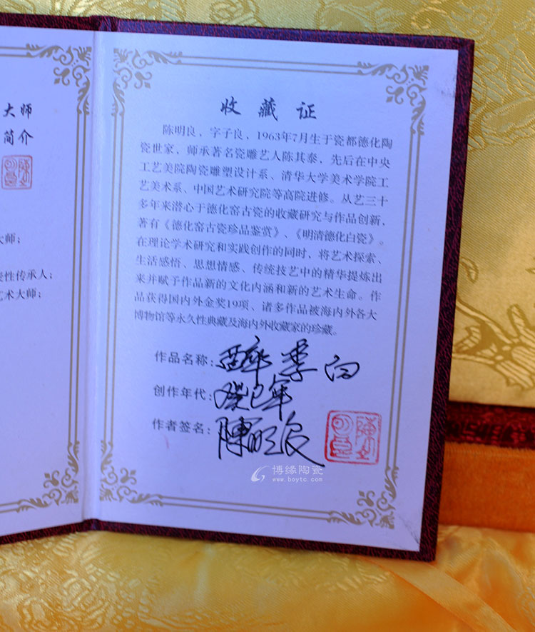 背部有中國工藝美術(shù)大師陳明良落款及手刻簽名