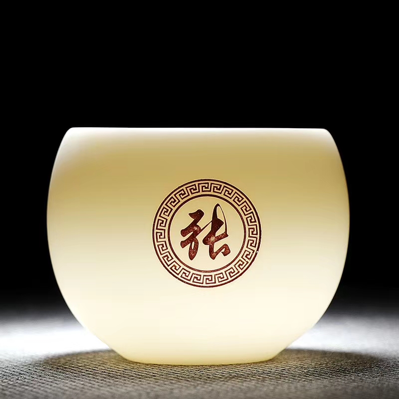 自然光下的養(yǎng)脂玉瓷茶具杯