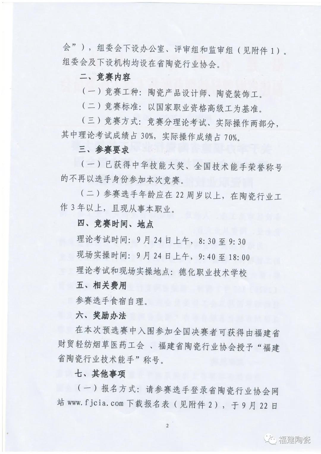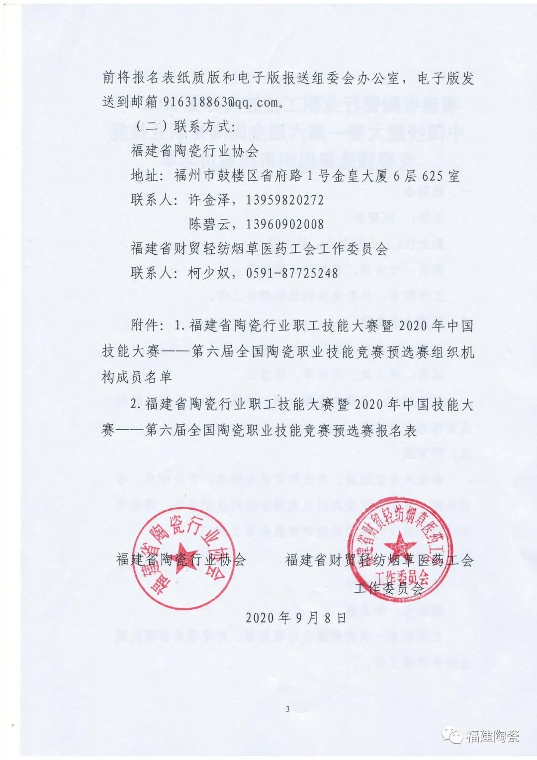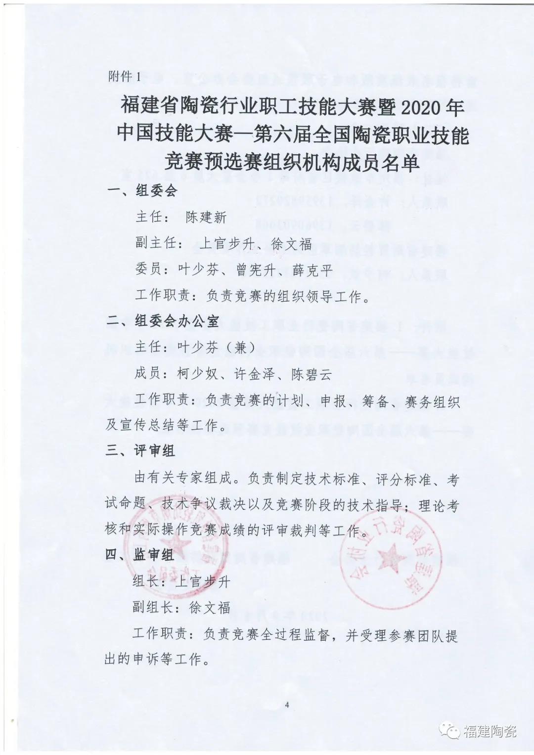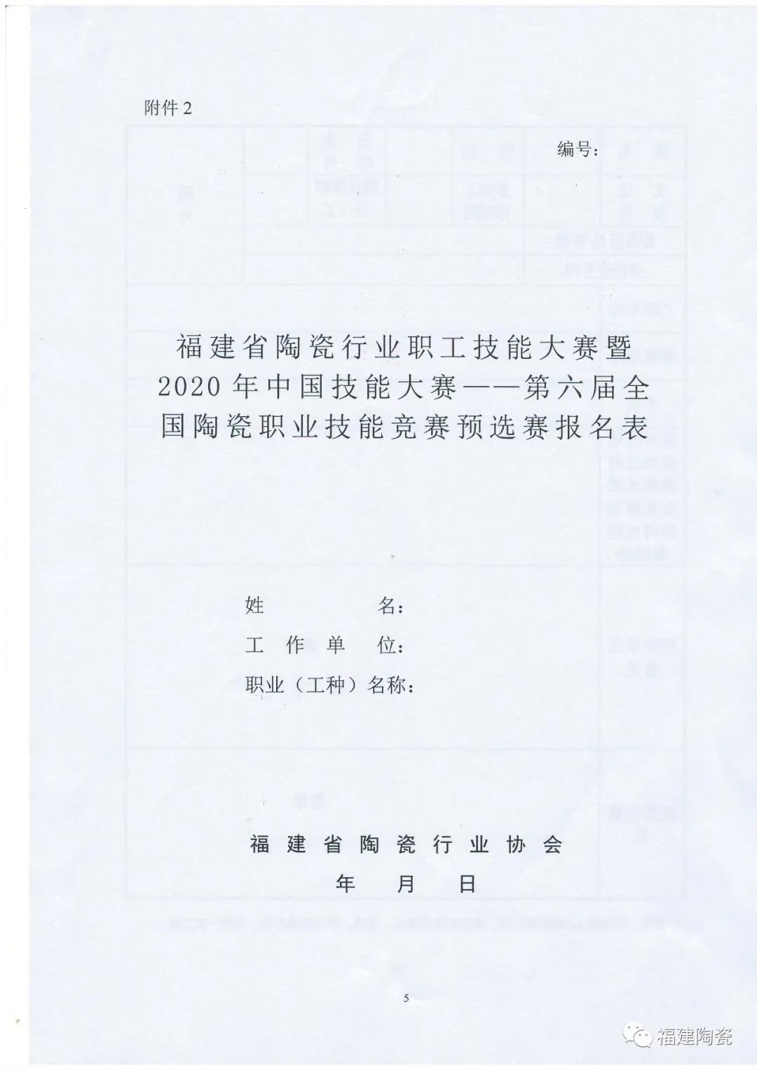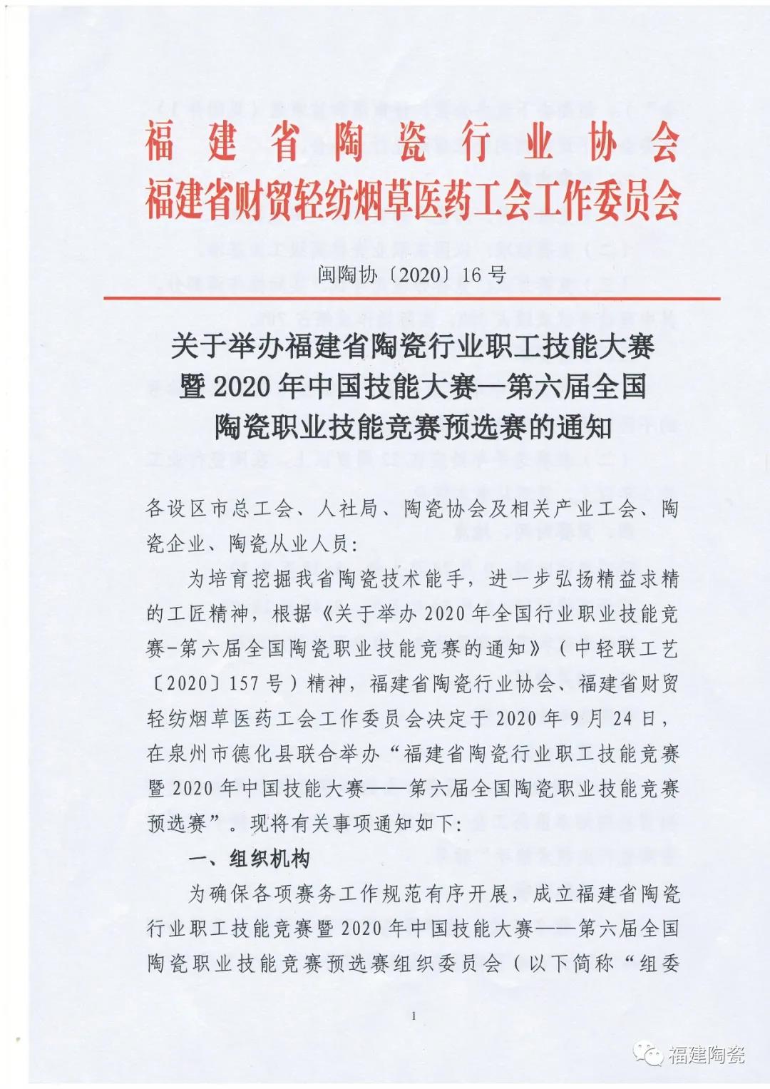 關(guān)于舉辦福建省陶瓷行業(yè)職工技能大賽暨2020年中國(guó)技能大賽—第六屆全國(guó)陶瓷職業(yè)技能競(jìng)賽預(yù)選賽的通知