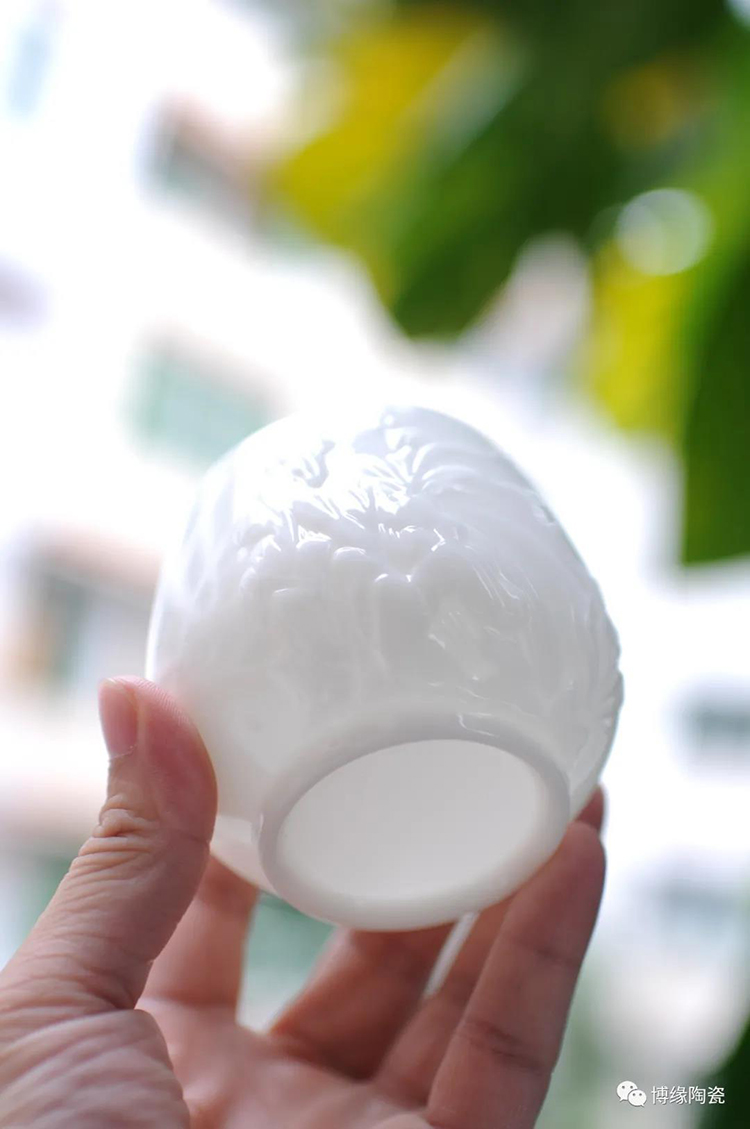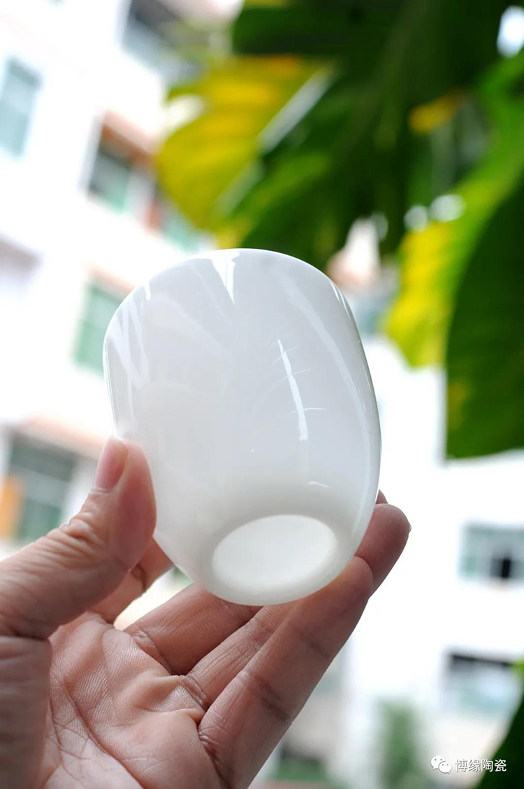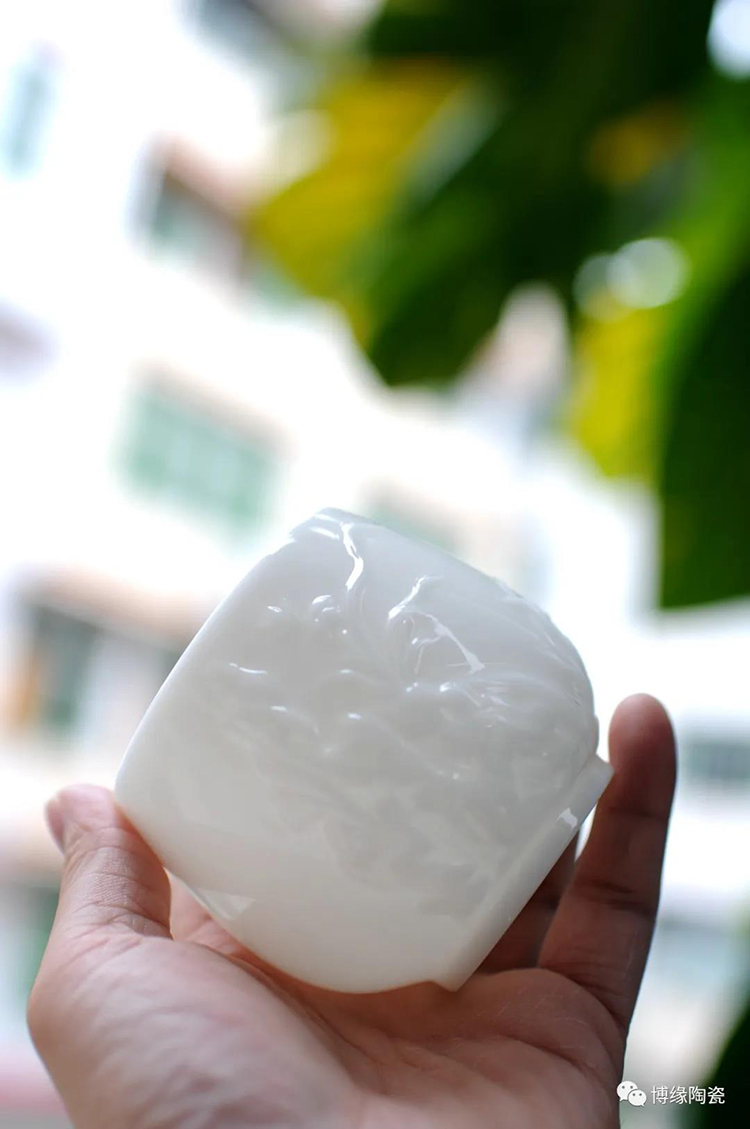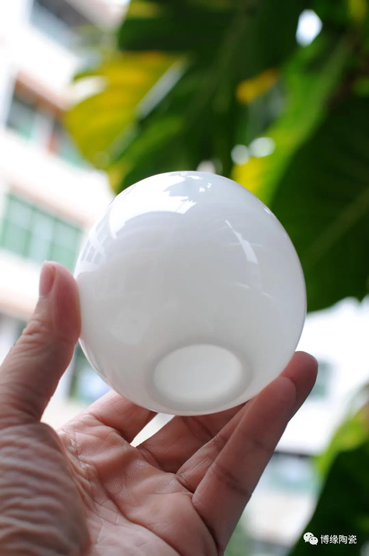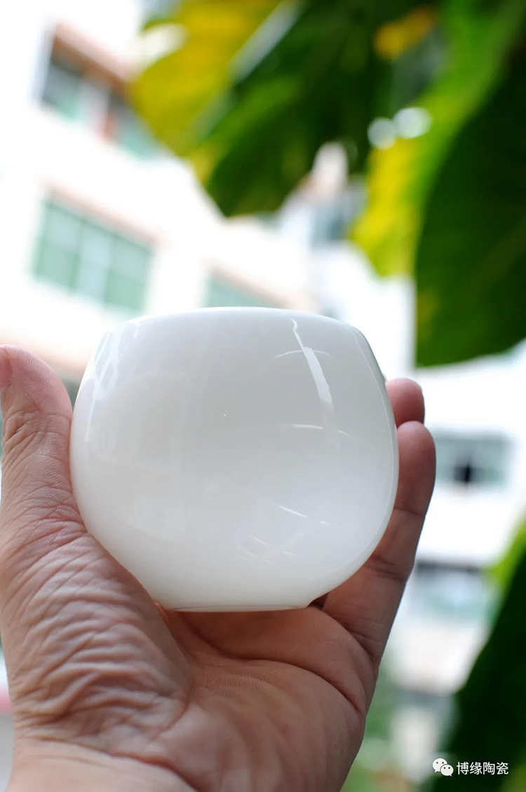 其瓷器特點溫潤如玉潔白、表面光滑但又不刺眼、瓷件呈現(xiàn)出半透明狀、在日光下顯示象牙白、用強光照射泛出微微的黃色光、上釉的施釉均勻,是瓷中上品。