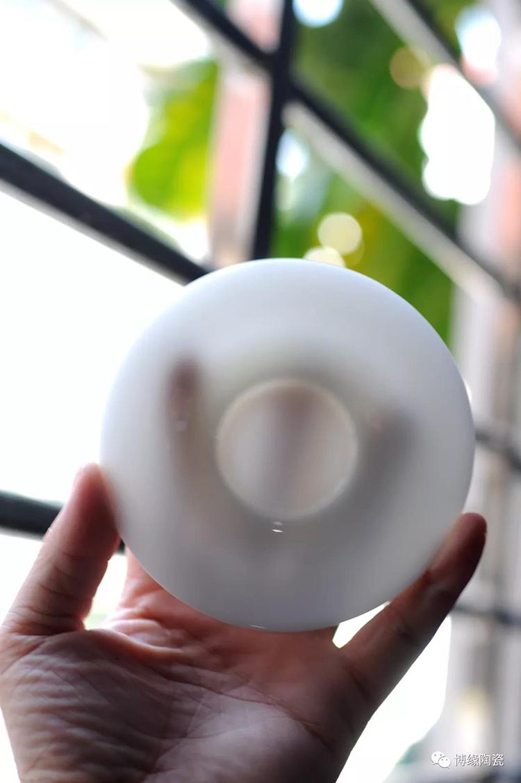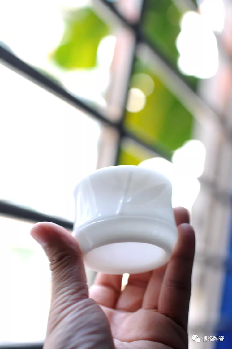 “翡玉瓷”表面光滑但又不刺眼、瓷呈現(xiàn)出半透明狀,用強光照射潤溫通透,表面施釉均勻,是瓷中上品。