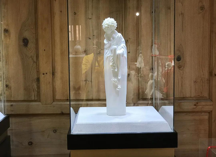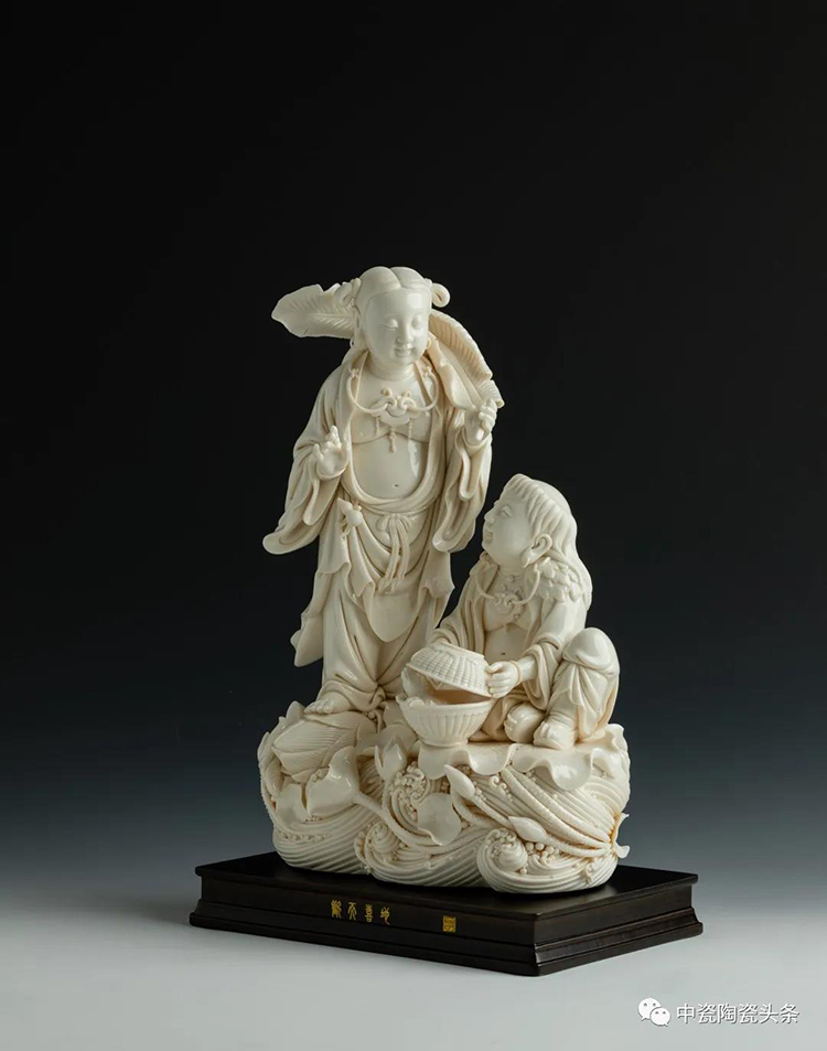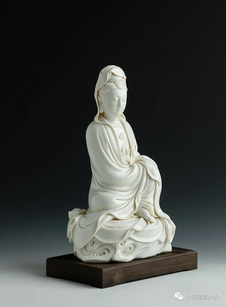 作品以傳統(tǒng)宗教人物造像為題材,選用優(yōu)質(zhì)德化象牙瓷為原料手工制制而成。觀音整體造型端莊典雅,衣紋處理層次分明、疏密有致、質(zhì)感柔順包滿動(dòng)靜相宜。菩薩臉部表情氣韻生動(dòng)、安靜祥和。2015年中國(guó)國(guó)家博物館收藏同款,限量99件。