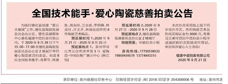 目前這八件拍品已在中國(guó)白推廣展示中心·晉江館(晉江五店市虎爺巷3號(hào))進(jìn)行巡展,歡迎前往觀賞。