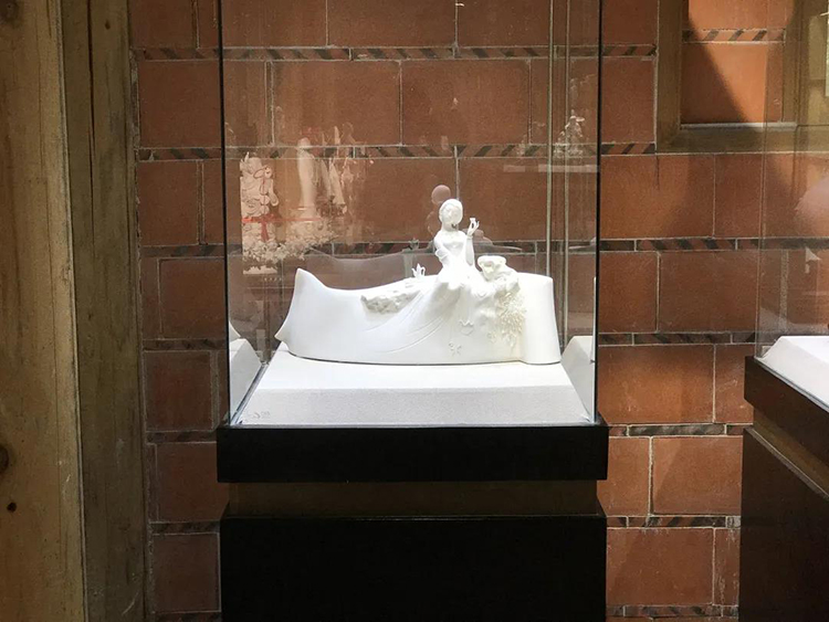 作品以詩(shī)人李清照的《醉花陰》作為故事場(chǎng)景,創(chuàng)作出獨(dú)坐東籬下的李清照,一邊飲酒,一邊賞菊的孤單離愁形象。巧妙的卷軸設(shè)計(jì)寓意作品自書中而來(lái),虛實(shí)搭配的造型構(gòu)思,增強(qiáng)了作品的層次感,多樣化的工藝技法結(jié)合,讓作品更富藝術(shù)價(jià)值。該作品在2017年6月榮獲中國(guó)設(shè)計(jì)原創(chuàng)獎(jiǎng)“陶·品”陶瓷設(shè)計(jì)大賽金獎(jiǎng)。