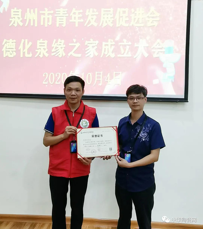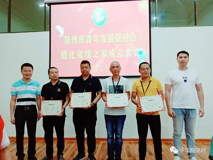會上泉州市青年發(fā)展促進會領導為德化理事單位頒發(fā)證書: