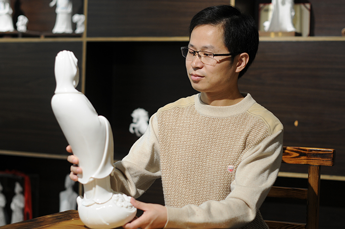 柯維太,1983年12月出生于“世界陶瓷之都德化”,中國(guó)青年陶瓷藝術(shù)家、高級(jí)工藝美術(shù)師、福建省工藝美術(shù)師、中國(guó)陶瓷工業(yè)協(xié)會(huì)會(huì)員、福建省商務(wù)禮品協(xié)會(huì)常務(wù)理事、德化縣博緣陶瓷文化有限公司總經(jīng)理兼藝術(shù)總監(jiān)。10多年潛心研習(xí)德化陶瓷文化,博采眾長(zhǎng),融會(huì)貫通,自成一格。2003年起從事設(shè)計(jì)工作,2006年創(chuàng)辦中華陶瓷網(wǎng)并開(kāi)始大量接觸陶瓷設(shè)計(jì)、開(kāi)發(fā)、銷售,與眾多當(dāng)代德化陶瓷藝術(shù)家學(xué)習(xí)交流,多次到全國(guó)陶瓷產(chǎn)區(qū)學(xué)習(xí)了解陶瓷文化,組織參加50多場(chǎng)次展覽,2011年創(chuàng)辦福建省德化縣博緣陶瓷文化有限公司,專業(yè)事陶瓷設(shè)計(jì)、創(chuàng)作,主要作品有佛像、人物擺件、茶器等,其所創(chuàng)作品多次榮獲國(guó)內(nèi)外金獎(jiǎng),深受好評(píng)。