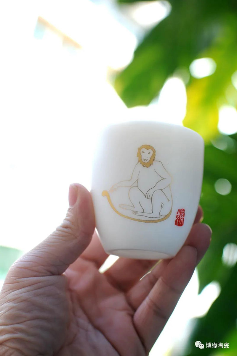 自然光下的養(yǎng)脂玉瓷茶具杯