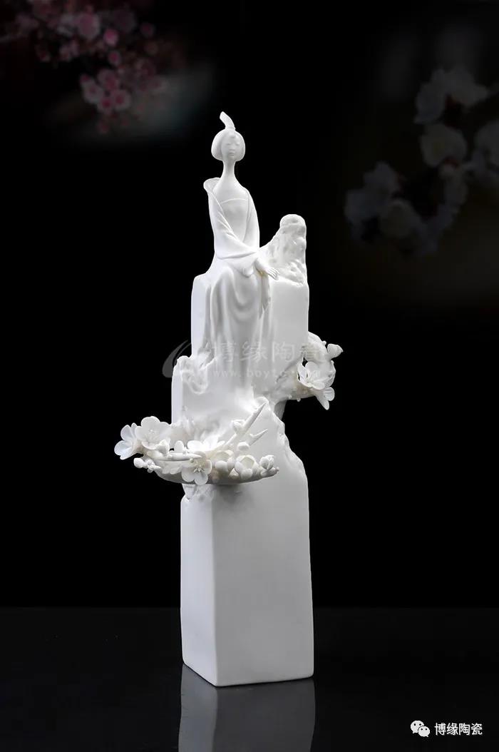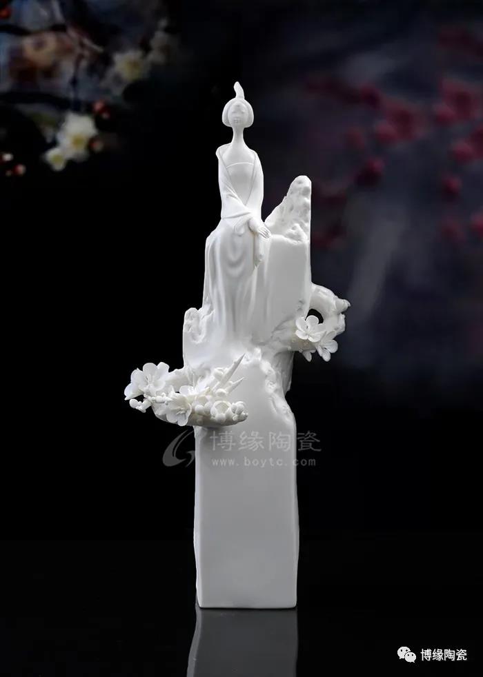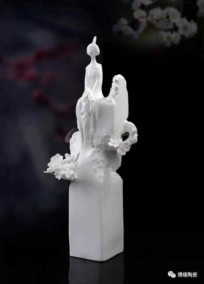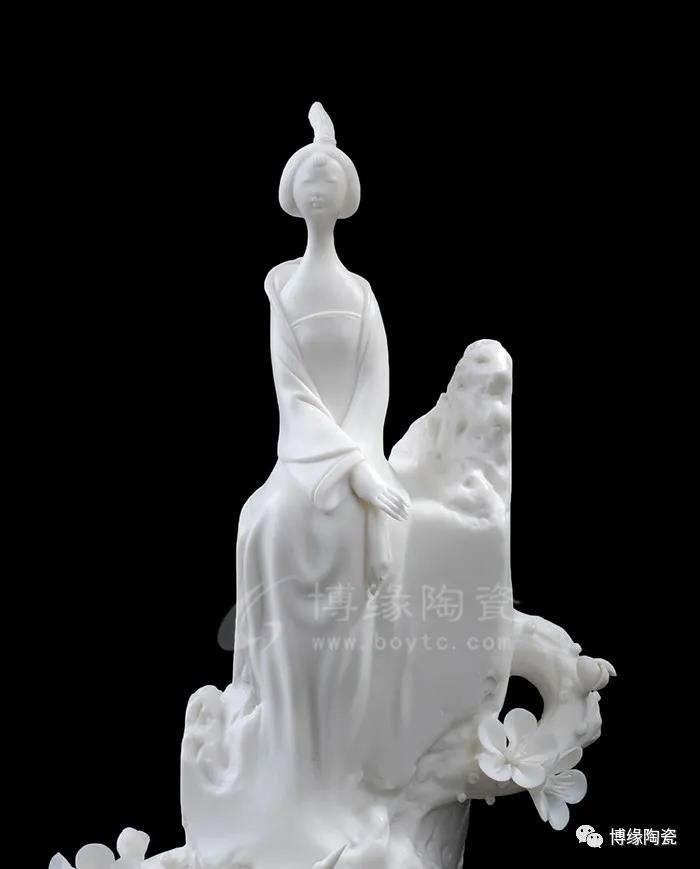 德化陶瓷作品創(chuàng)作題材豐富,其中仕女也是一大題材之一,自古以來,以四大美女、唐清仕女等人物創(chuàng)作的作品比比皆是。因德化白瓷細(xì)膩,可塑性強,適合仕女作品創(chuàng)作,所創(chuàng)作品人物傳神,雕刻精細(xì)!