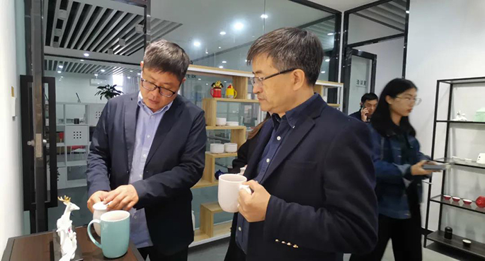 分享會結(jié)束后,孫教授參觀了研究院產(chǎn)品展廳,并高度贊賞了以“浮茶映月”、“瓷愛一生”、“四季花瓣”為代表的一系列原創(chuàng)設(shè)計產(chǎn)品。