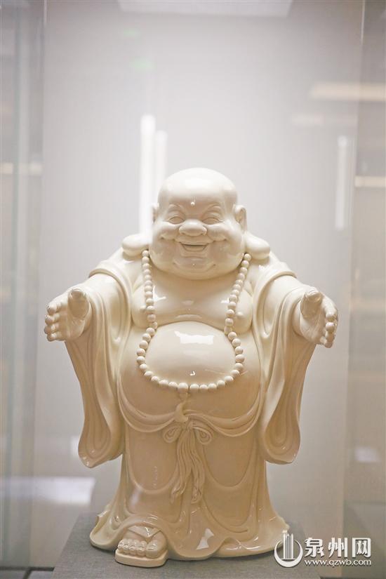 除了讓人嘆為觀止、精巧絕倫的白瓷代表作《三十三態(tài)觀音》,還有為大家所熟知與喜愛的彌勒佛系列創(chuàng)意大型造像,以及氣韻生動、美輪美奐的大型彩瓷佛像……近日的個人作品展上,吳志勇相當(dāng)于向各界匯報了他從藝以來的成果,這些作品是他陶瓷藝術(shù)作品的代表,也反映了傳統(tǒng)瓷雕技藝結(jié)合現(xiàn)代藝術(shù)發(fā)展的探索。