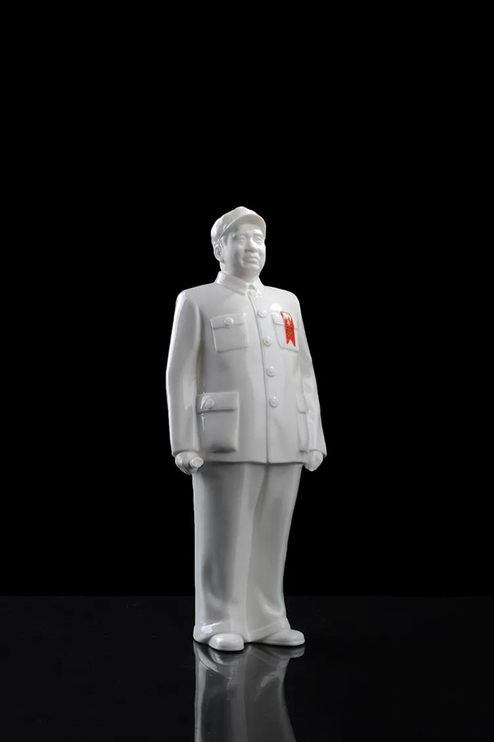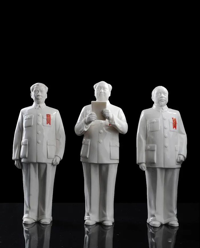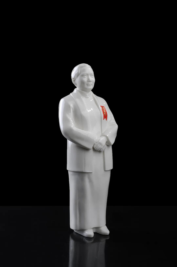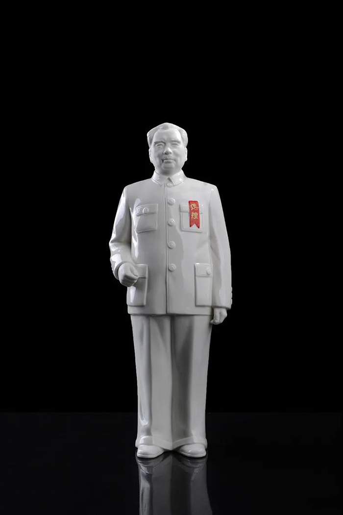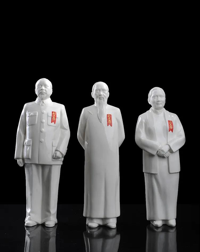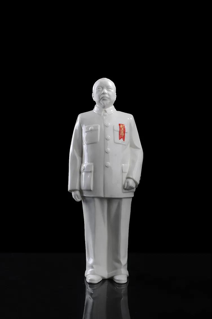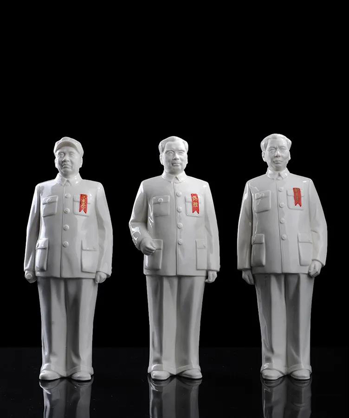《開國大典》由福建省工藝美術(shù)大師張祥琦創(chuàng)作,作品以德化特有的“中國白”瓷泥為材料,采用寫實與概括相結(jié)合的表現(xiàn)手法,歷時近一年才創(chuàng)作完成。人物高30厘米,從左到右依次是:朱德、劉少奇、周恩來、毛主席、李濟深、宋慶齡、張瀾。整組作品人物形象惟妙惟肖、栩栩如生,眼睛正視前方,神情堅定,從容而莊重,極具神韻。藝術(shù)再現(xiàn)了1949年10月1日,毛澤東與開國元勛們站在天安門城樓上,由毛澤東宣布中華人民共和國成立的壯麗情景。