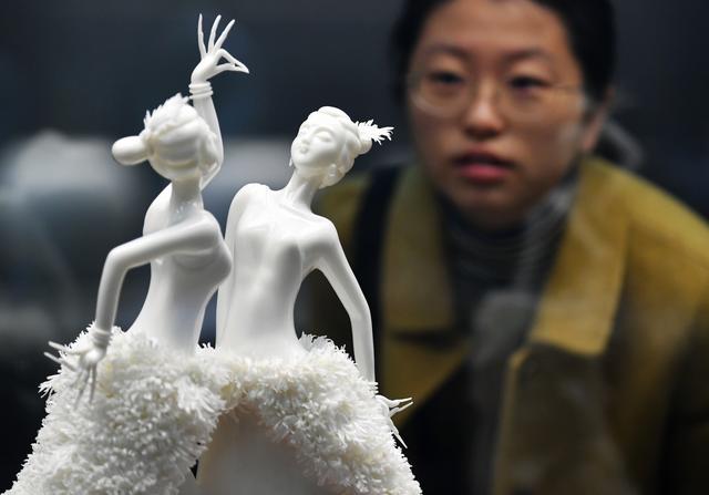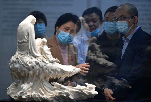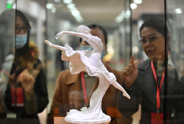 ↑12月16日,觀眾在欣賞傳統(tǒng)陶瓷藝術作品《天鵝飛舞》。12月15日,首屆德化“中國白”中國傳統(tǒng)陶瓷藝術雙年展開幕式暨頒獎典禮在福建泉州德化舉行。本屆雙年展以“弘揚匠心致敬傳統(tǒng)”為主題,經(jīng)全國15位專業(yè)評委精心評選出的158件傳統(tǒng)陶瓷藝術精品進行集中展出,展出時間至2021年3月15日。新華社記者魏培全攝