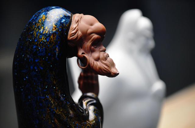 ↑這是12月16日拍攝的中國傳統(tǒng)陶瓷藝術精品《達摩渡江》局部。