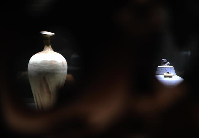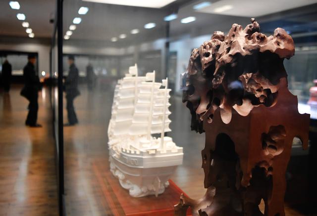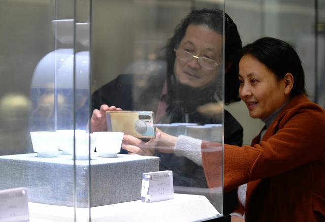 ↑12月16日,兩名觀眾在拍攝陶瓷藝術精品。