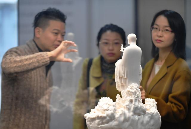 ↑這是12月16日拍攝的首屆德化“中國白”中國傳統(tǒng)陶瓷藝術雙年展入選作品展示現(xiàn)場。