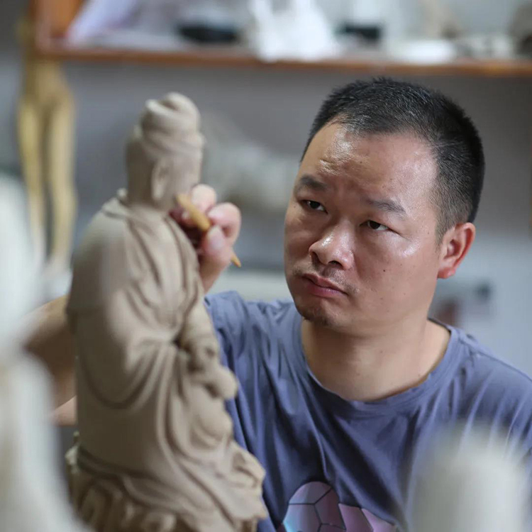 本次雙年展以弘揚(yáng)匠心,致敬傳統(tǒng)為主題,傳統(tǒng)題材自然而然成為蘭全盛的首選。但對(duì)蘭全盛而言,觀音彌勒之類的題材可能難以更上一層樓,老子是道家的代表性人物,也是人們所熟知的題材,比起觀音彌勒更加具有突破的創(chuàng)作空間,更能體現(xiàn)一些新的東西。所以蘭全盛選擇了老子這個(gè)題材。
