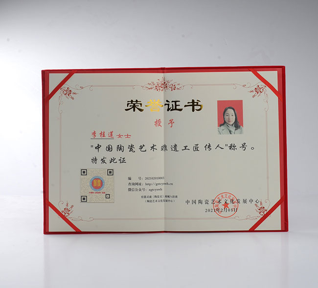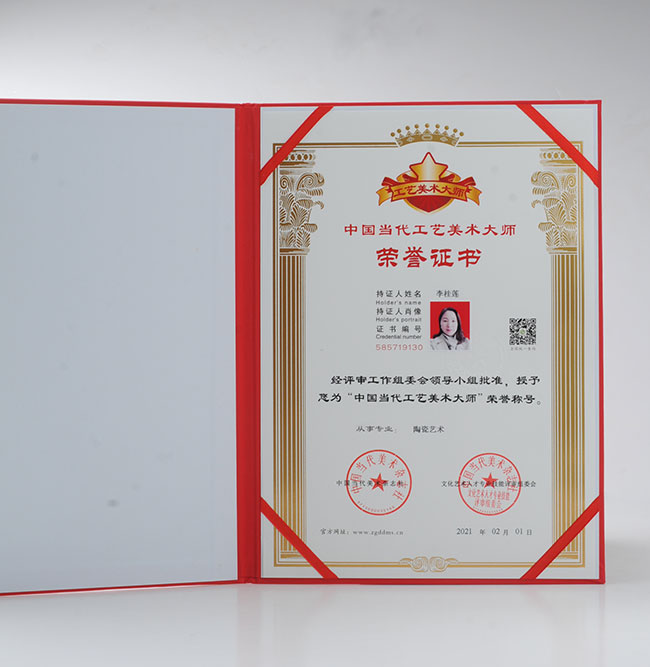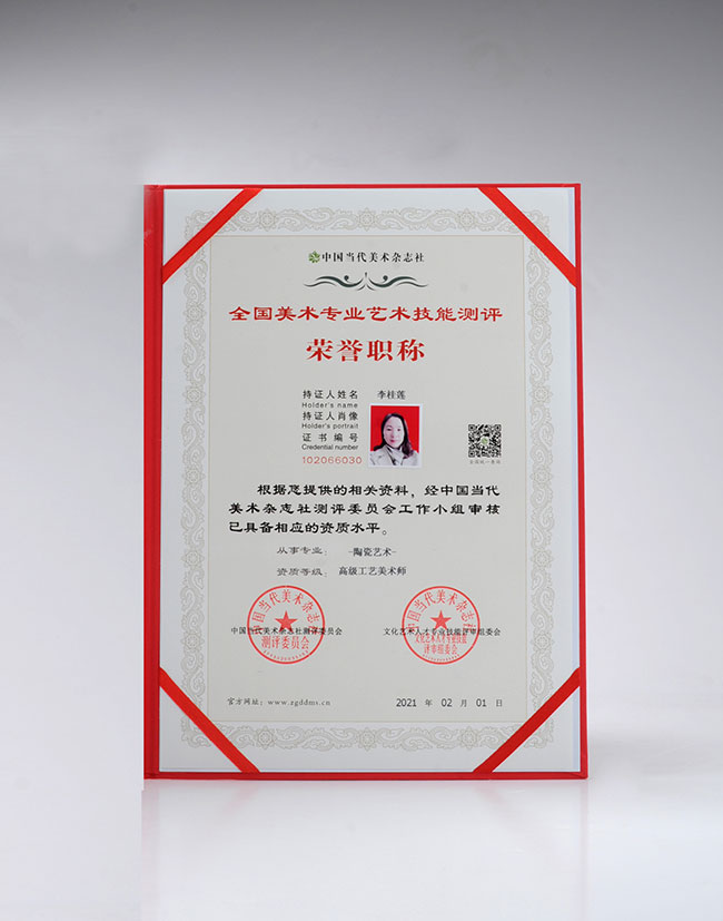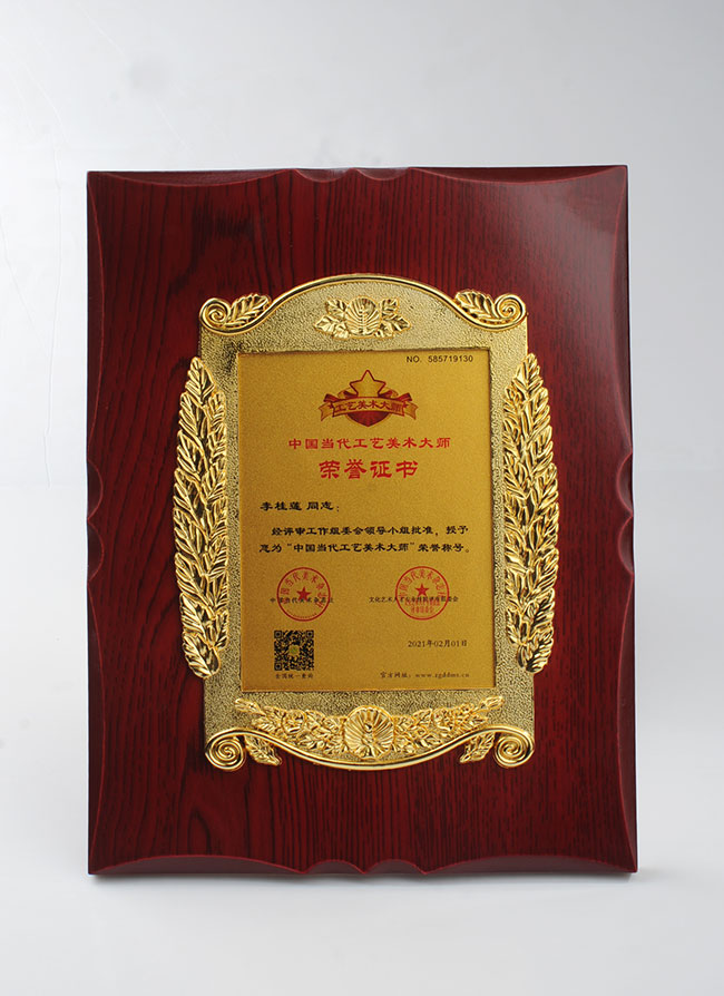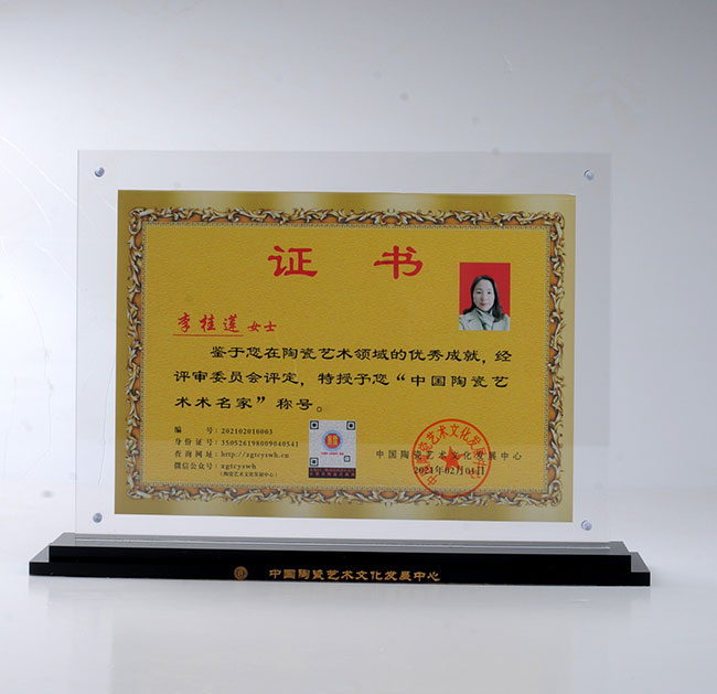 經(jīng)過20多年的實(shí)踐及其家族藝術(shù)領(lǐng)域浸染,李桂蓮在陶瓷瓷釉研究、堆雕絕技,藝術(shù)繪畫等領(lǐng)域有較深造旨,其設(shè)計(jì)創(chuàng)作作品多次榮獲金獎(jiǎng),深受好評(píng)。