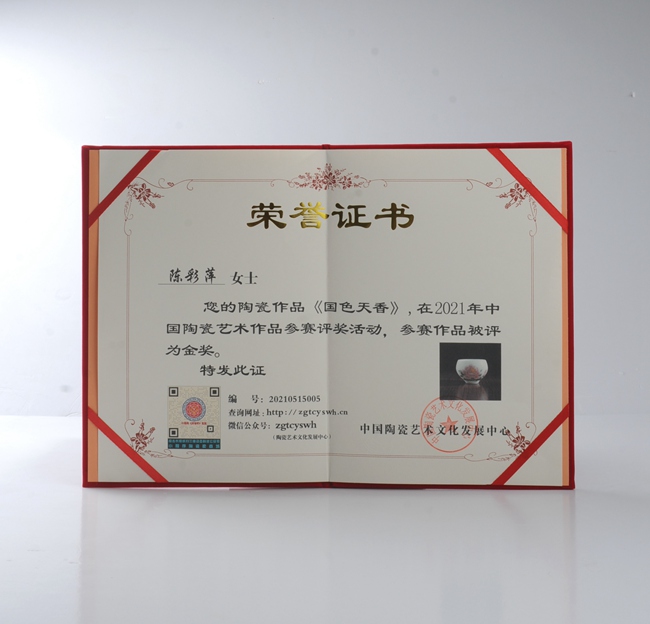 《國(guó)色天香禪定杯》榮獲2021年中國(guó)國(guó)際北京陶瓷藝術(shù)名家作品展金獎(jiǎng)