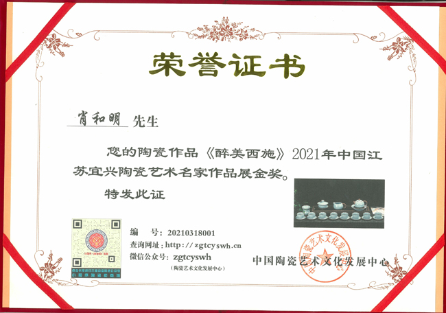 《醉美西施》榮獲2021年中國江蘇宜興陶瓷藝術(shù)名家作品博覽會金獎