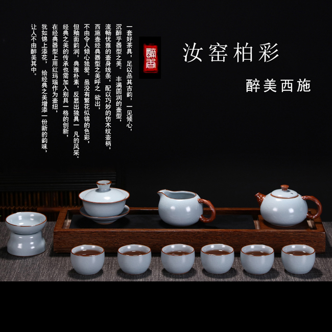 一套好茶具,足以品其古韻,一見傾心,沉醉乎器型之美。 豐滿圓潤的壺型,流暢優(yōu)雅的壺身線條,配以巧妙的仿木紋壺柄,西施壺經(jīng)典器型之美呼之 欲出,不由令人傾心獨愛。雖沒有繁花似錦的色彩,但釉面韻潤,典雅樸素,反顯出獨具一 凡的風(fēng)采。 經(jīng)典之美的傳承也需加入別具一格的創(chuàng)新,在經(jīng)典器型上用紅瑪瑙作為壺紐,猶如錦上添花, 給經(jīng)典之美增添一份新的韻味,讓人不由醉美其中。