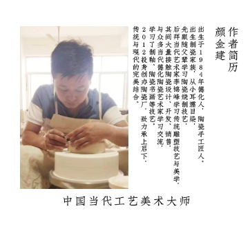 顏金建,出生于1984年德化人,中國當(dāng)代工藝美術(shù)大師,陶瓷手工匠人。 顏金建,出生于制瓷家族,從小耳濡目染,跟隨父輩學(xué)習(xí)陶瓷燒制技藝,后拜當(dāng)代藝術(shù)家李錦峰學(xué)習(xí)傳統(tǒng)雕塑技藝與美學(xué),其間大量接觸陶瓷設(shè)計、開發(fā)、銷售,與眾多當(dāng)代德化陶瓷藝術(shù)家學(xué)習(xí)交流,學(xué)習(xí)制釉、陶瓷書畫等技藝。2012投身創(chuàng)辦新煌祥陶瓷廠,2019年創(chuàng)立古汝品牌,致力承上啟下,傳統(tǒng)與現(xiàn)代的完美結(jié)合。經(jīng)過多年的積累,顏金建開出一系列茶器作品,其作品受廣大客商喜愛。