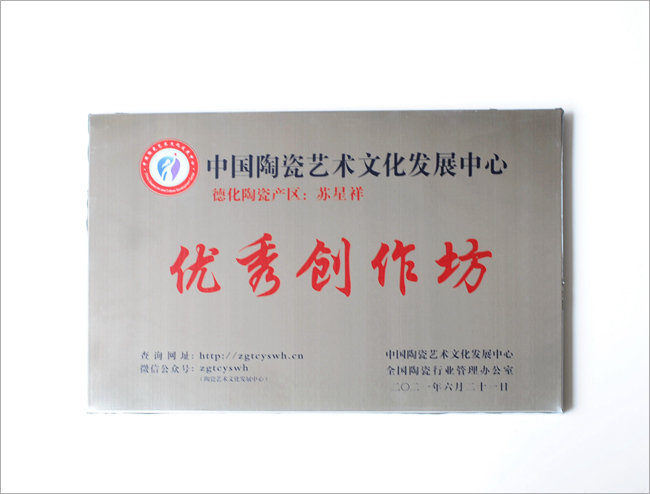 2021年榮獲中國陶瓷藝術(shù)名家稱號,并榮獲“優(yōu)秀創(chuàng)作坊工作室”。