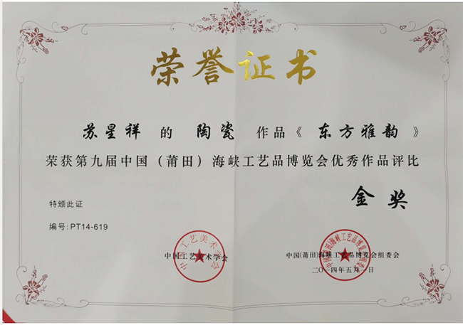 2014年《東方雅韻》獲第九屆(莆田)海峽工藝品博覽會金獎。