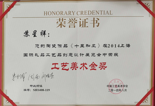 2014年《十里和風》獲上海國際禮品展工藝美術(shù)金獎