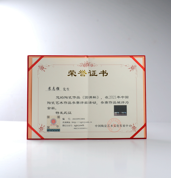 作品《圓滿杯》獲榮2021年中國陶瓷藝術(shù)作品評比金獎。