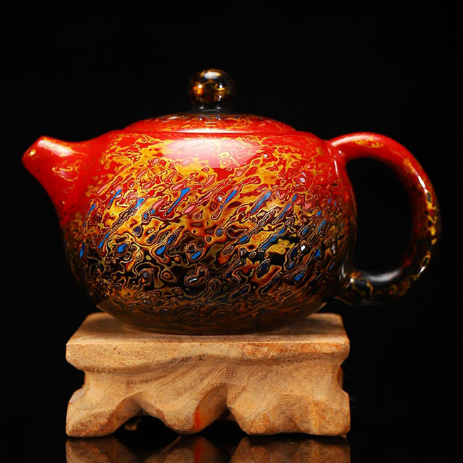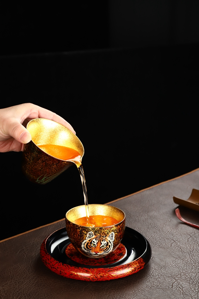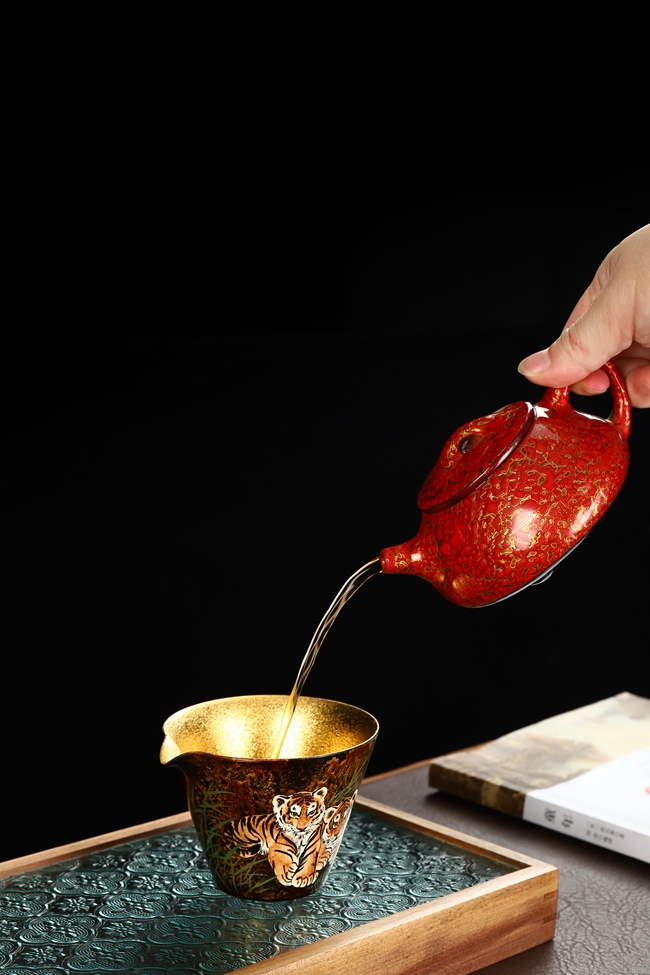 王存旭深愛當(dāng)?shù)靥厣a(chǎn)業(yè)德化瓷器。積極創(chuàng)新尋找漆畫技法表現(xiàn)更多的“可能性”致力研究德化白瓷與漆器結(jié)合。創(chuàng)作出漆藝功夫茶具,茶道配件、單杯茶器等一系列產(chǎn)品。漆藝與茶器的碰撞,將現(xiàn)代的時(shí)尚元素、色彩、造型與傳統(tǒng)漆藝技法相“混搭”實(shí)用與審美并重,使漆藝真正走出搏物館,走入大眾生活。體現(xiàn)豐富文化內(nèi)涵和更高藝術(shù)價(jià)值。