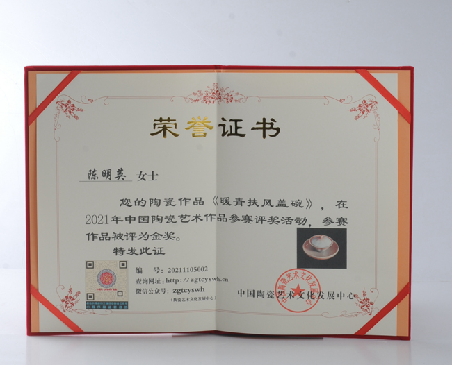 《暖青扶風(fēng)蓋碗》榮獲中國陶瓷藝術(shù)評獎金獎