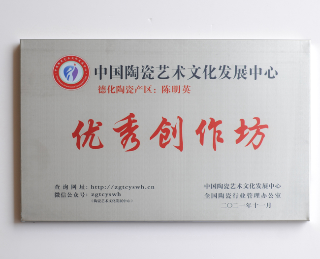 榮獲2021年度中國陶瓷藝術(shù)文化優(yōu)秀創(chuàng)作坊稱號