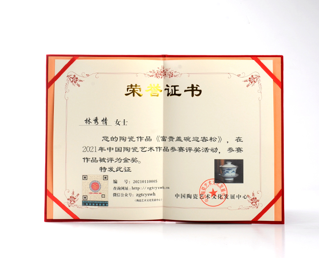 陶瓷藝術(shù)作品《富貴蓋碗迎客松》榮獲金獎(jiǎng)