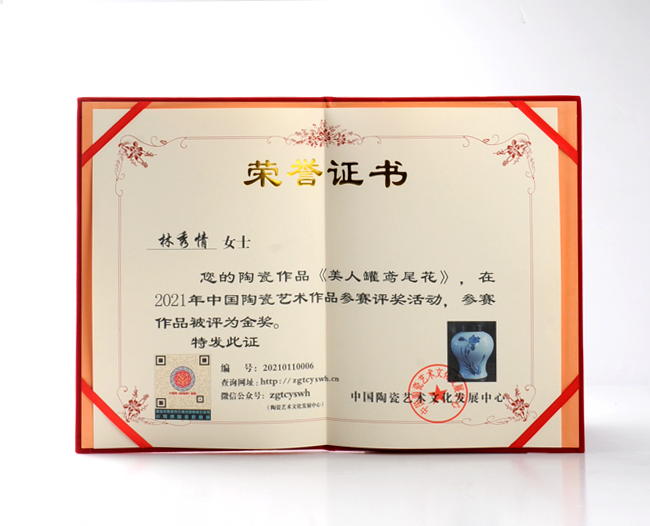 林秀情陶瓷藝術(shù)作品《美人罐鳶尾花》榮獲21年中國(guó)陶瓷藝術(shù)作品評(píng)獎(jiǎng)金獎(jiǎng)