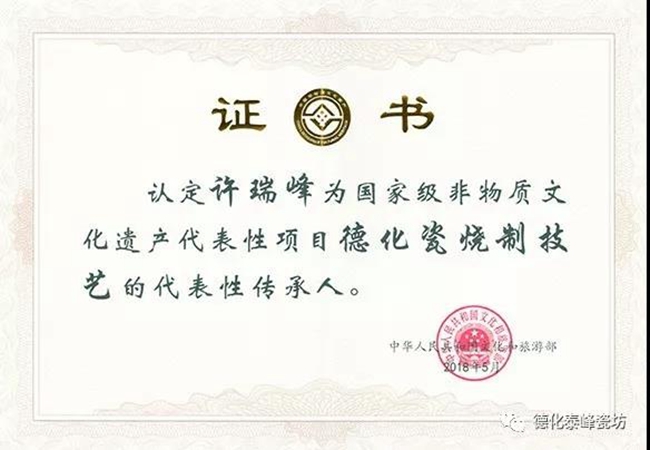 非物質(zhì)文化遺產(chǎn)(德化瓷燒制技藝)國(guó)家級(jí)傳承人