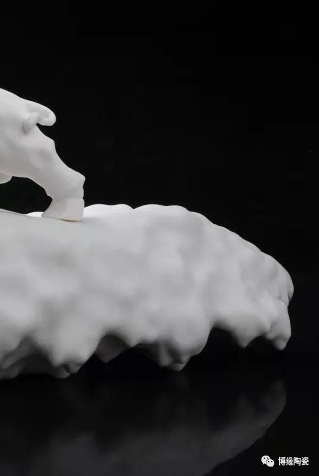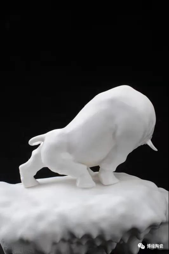 《砥礪奮進(jìn)》由中國傳統(tǒng)工藝美術(shù)大師徐文守創(chuàng)作,作品長33,寬 16,高20 cm,采用德化優(yōu)質(zhì)高嶺土,經(jīng)1300多度高溫?zé)疲商貪櫵朴裢腹饩強(qiáng)。