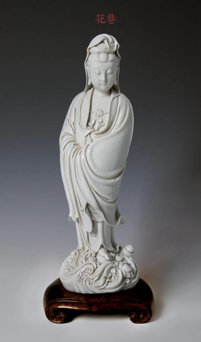 德化白主要以明和清兩個(gè)時(shí)代為代表。明代鼎盛期的德化白瓷胎質(zhì)細(xì)膩堅(jiān)致,胎色潔白,有著天然象牙般的妙趣,制品釉色以乳白色為大宗,光照之下,胎釉透亮,隱約可見粉紅或乳白色,有“豬油白”“象牙白”“鵝絨白”“蔥根白”“女兒紅”的美稱。在清代,泉州德化白瓷成為了中國(guó)白瓷的杰出代表,被譽(yù)為 “中國(guó)白”而遠(yuǎn)銷世界。