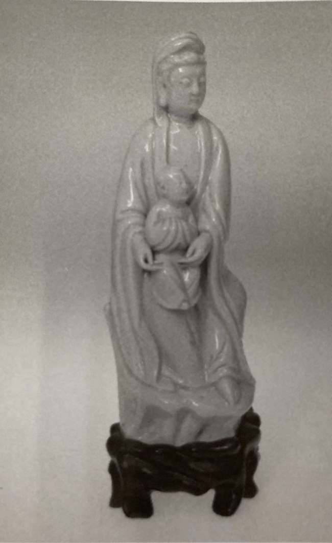 (Figure of Guanyin seated on rockwork with a boy on her lap, 1640 19x7. 3x6cm 坐巖觀音像,膝抱有一小童,約1640年,19×7.3×6厘米)