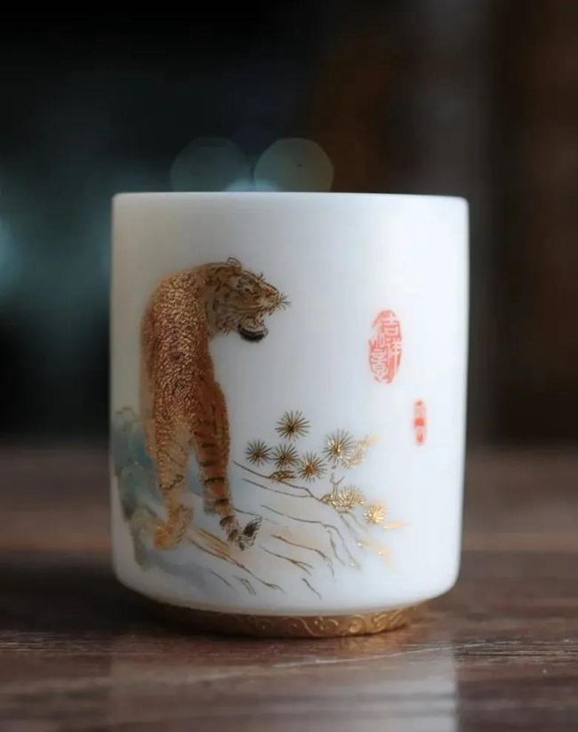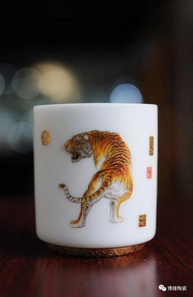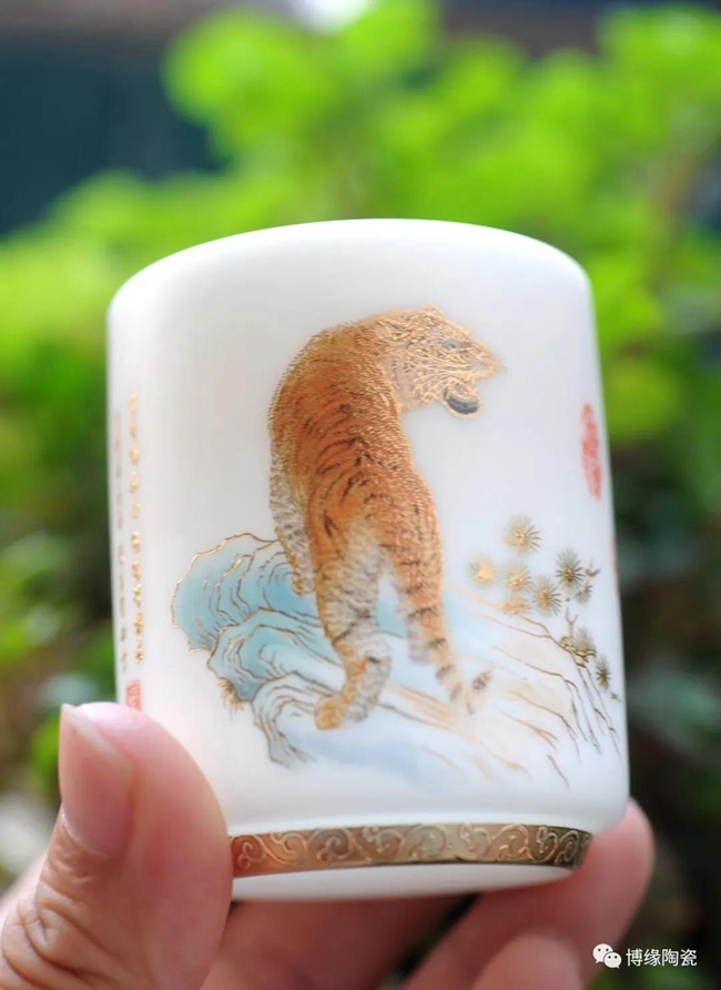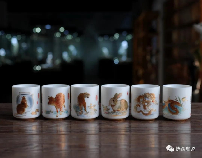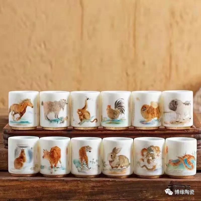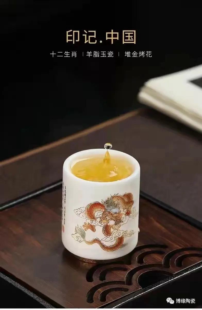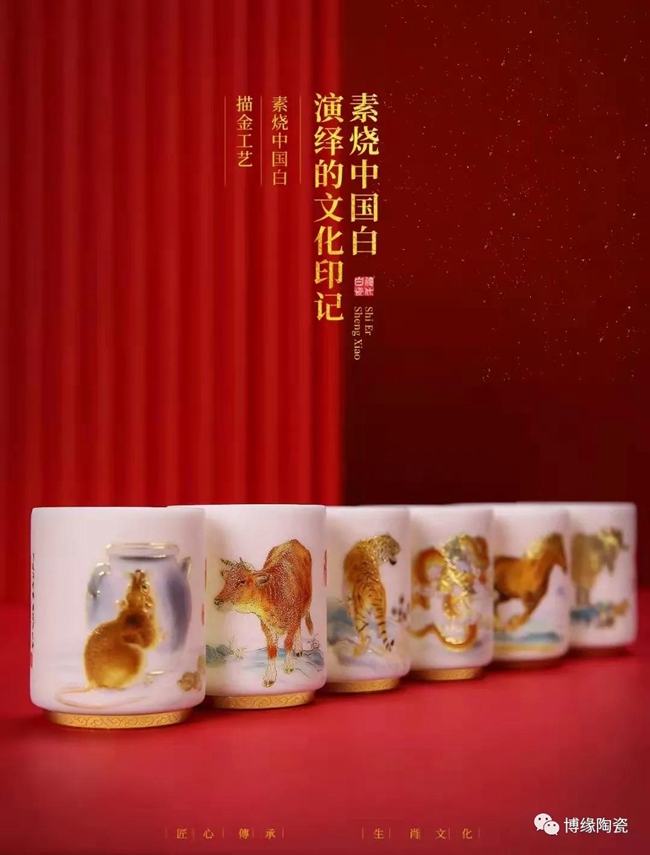 在2022年新年來臨之際,博緣陶瓷特推出“中國印記十二生肖”羊脂玉瓷杯,十二生肖,又叫屬相,是中國與十二地支相配以人出生年份的十二種動物,即子(鼠)、丑(牛)、寅(虎)、卯(兔)、辰(龍)、巳(蛇)、午(馬)、未(羊)、申(猴)、酉(雞)、戌(狗)、亥(豬),隨著歷史的發(fā)展逐漸融合到相生相克的民間信仰觀念。此作品描繪栩栩如生,靈活靈現(xiàn),采用堆料花紙工藝,品質(zhì)高,品相好,手工描金,使作品更具尊貴氣質(zhì),作品采用30000多元/每噸瓷泥1300多度高溫?zé),瓷胎薄潤如玉,玲瓏透光,具有較高的實用和鑒賞價值。