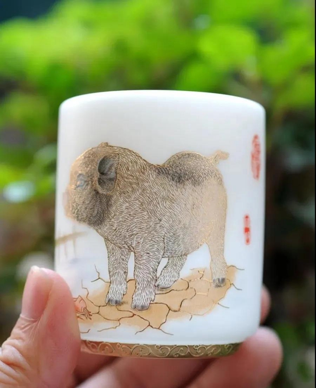 瓷杯通體質(zhì)白中,生肖姿態(tài)生動活潑,吉祥福氣。也為新的一年獻(xiàn)以美好的祝愿,年年新氣象,月月連好運。