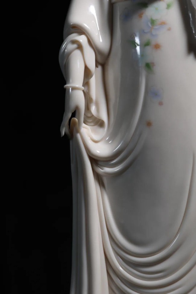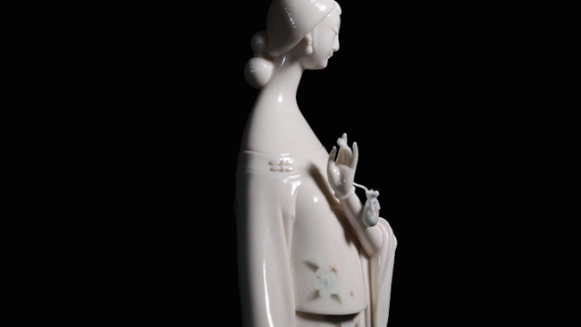 材質(zhì)優(yōu)良,再加上德化窯瓷工匠人精湛的技法,燒制出的白瓷能夠呈現(xiàn)白里微黃(象牙白)或白里透紅(孩兒紅)的寶光,是東方人膚色最完美的表現(xiàn)。