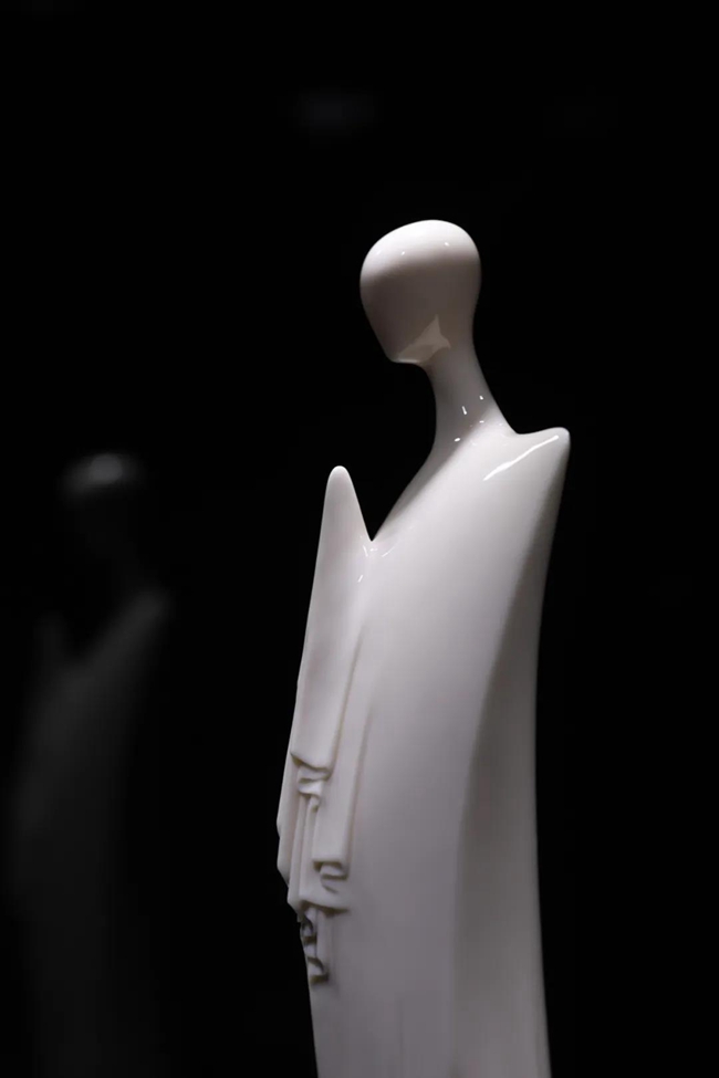 李璋高的《無相》系列作品,是他將極簡主義美學(xué)理念運(yùn)用到德化白瓷雕塑中的代表作。如《無相》系列中的《行者》以及《渡化》,一個(gè)最顯著的特征就是幾何化的線條處理。