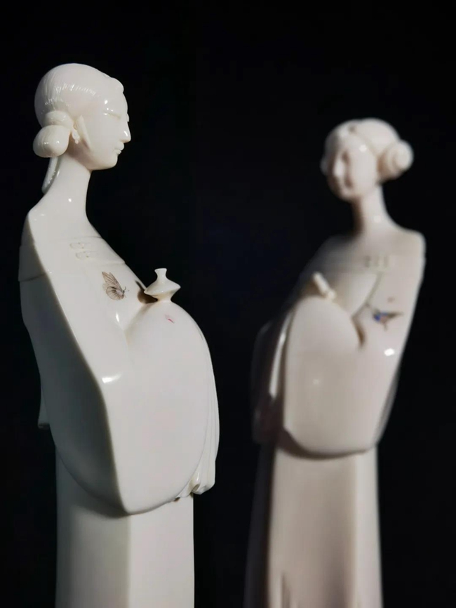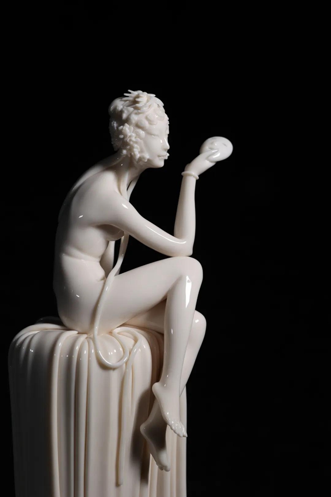 在《格格的夢想》《戲里戲外》《憧憬》等當(dāng)代女性題材作品中,李璋高用白瓷這一細(xì)柔堅(jiān)致、溫潤潔凈的材質(zhì),表現(xiàn)和葆有了中國女性細(xì)膩而精美的精神世界。