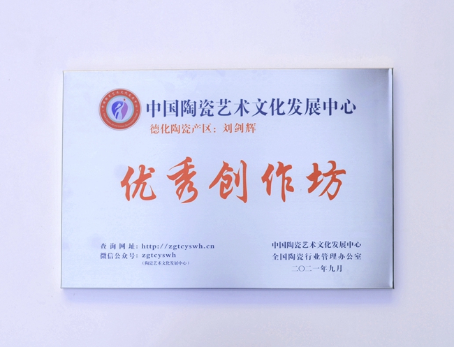榮獲2021年度中國陶瓷藝術(shù)文化優(yōu)秀創(chuàng)作坊稱號